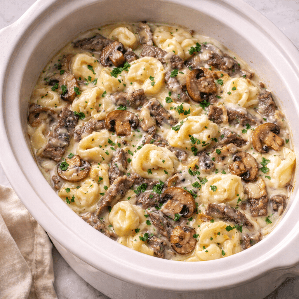 7. Crock Pot Cheesesteak Tortellini