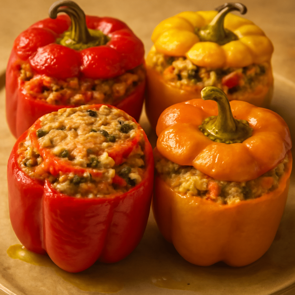 - Stuff the peppers with the meat mixture and place them in the pot. Add a bit of water, cover, and cook for 20-25 minutes.