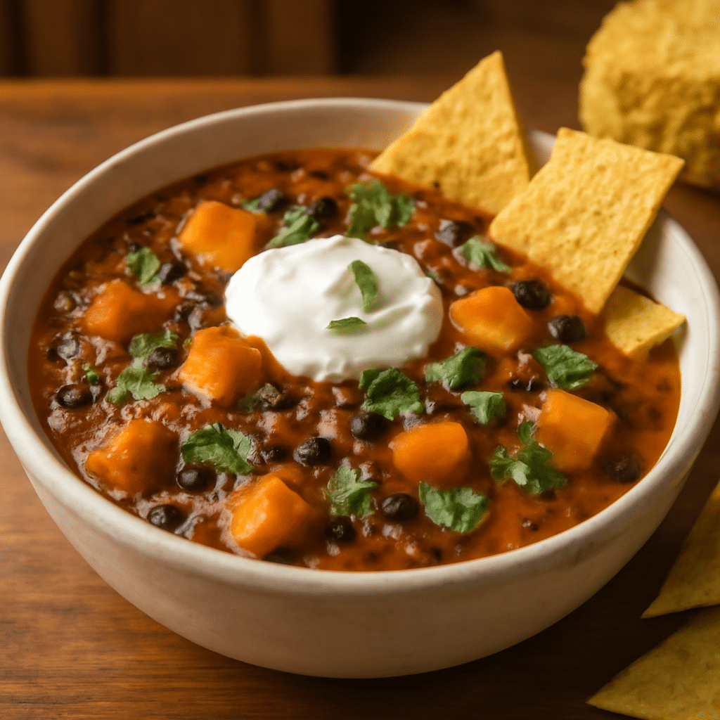If you want something comforting and filling but also healthy, this sweet potato and black bean chili is a perfect fit. Sweet, savory, and just the right amount of spice.